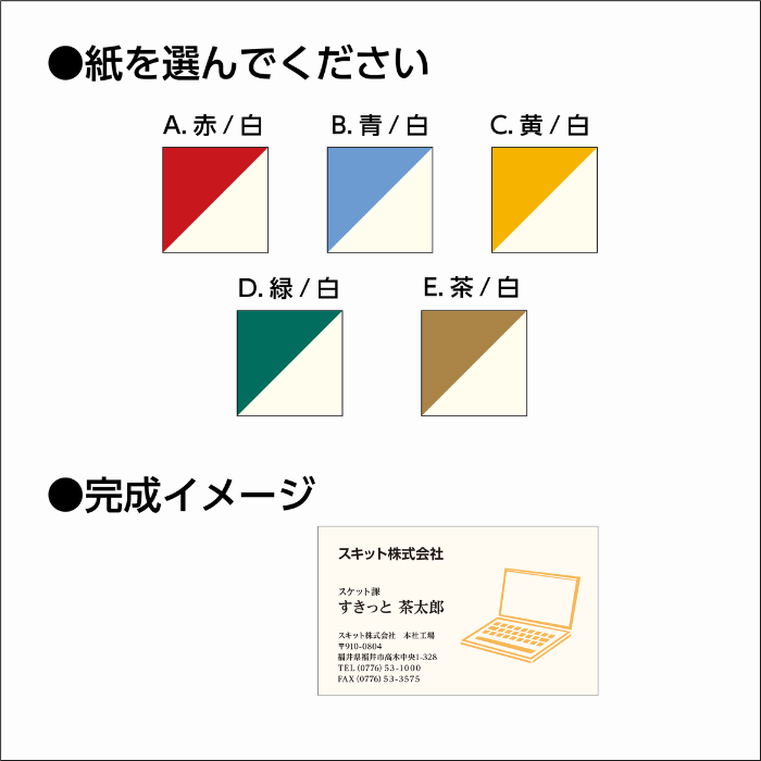 A:赤/白 B:青/白 C:黄/白 D:緑/白 E:茶/白